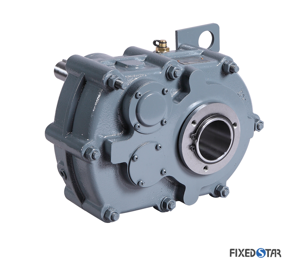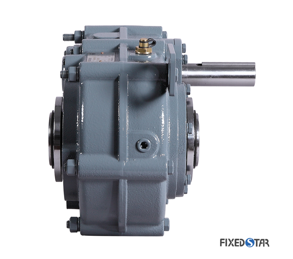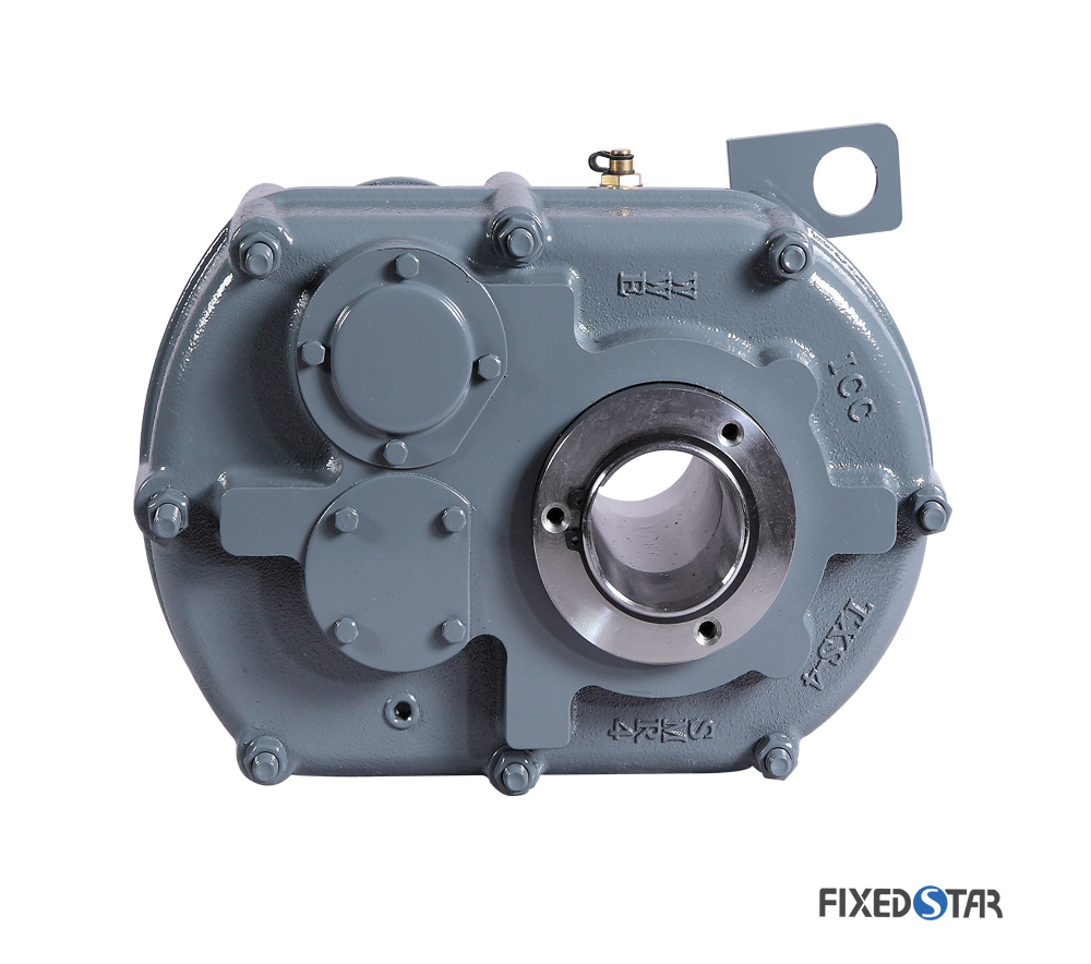 SMR、SMRY. SMR-R轴装式减速机结构紧凑,承载能力大,传动效率高(单级齿轮传动效率高达98.5% ),传动平稳,噪声低,性能可靠,广泛应用于矿山、冶金、.工程机械等行业.输出空心轴的两端均有锥度部分,使用各种不同的输出锥套可实现不同的输出孔大小,锥套孔符合ANSI美制标准,同时也备有ISO标准的公制直孔输出轴供客户选用.箱体采用高强度铸铁精密铸造,具有优良的减振缓冲击能力。齿轮采用高强度合金钢材料,渗碳淬火,磨齿工艺,渐开线齿形修形。逆止器可用于减速机不能反转的使用条件,扭力臂可用来安装调整减速机的空间位置及皮带的松紧。